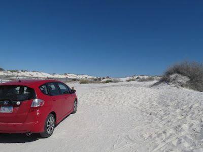Just over the hill (east of Las Cruces) is the White Sands National Monument. The sands are really gypsum (the stuff inside of drywall) and are very different than sand. First off, in the hottest weather, you can walk on the sands barefoot and not be burnt. You can sled on it and you can die out there amongst it. We had a French couple who were hiking one of the trails this summer with their son. They did not take adequate water with them and the parents died, the son lived.